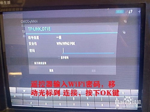 遥控器输入WiFi暗码,移动光标至“毗连”,按下OK键,WiFi毗连当作功。