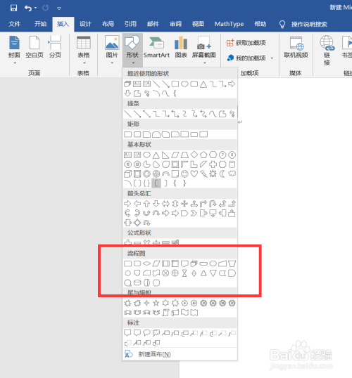 在弹出的页面中找到“流程图”系列外形,点击本身想要的外形