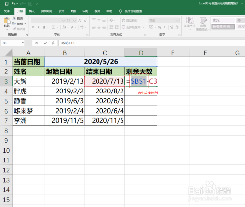 5.选中B1,然后按住F4,锁定一下,点击回车。