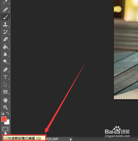 接着点击进入左下角的“以快速蒙版模式编纂”。选择矩形东西,将要抠图的图片选中。