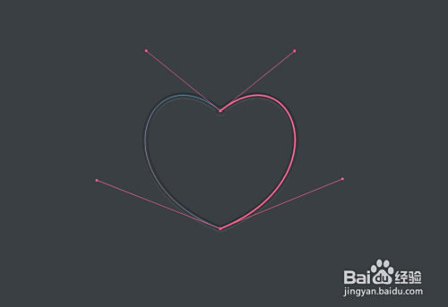 第四个例子是画心形,这个需要先找到起点,点击鼠标左键不松拉出曲线拉杆,然后按Alt键调整曲线下一步的曲线偏向。最后封锁图形。