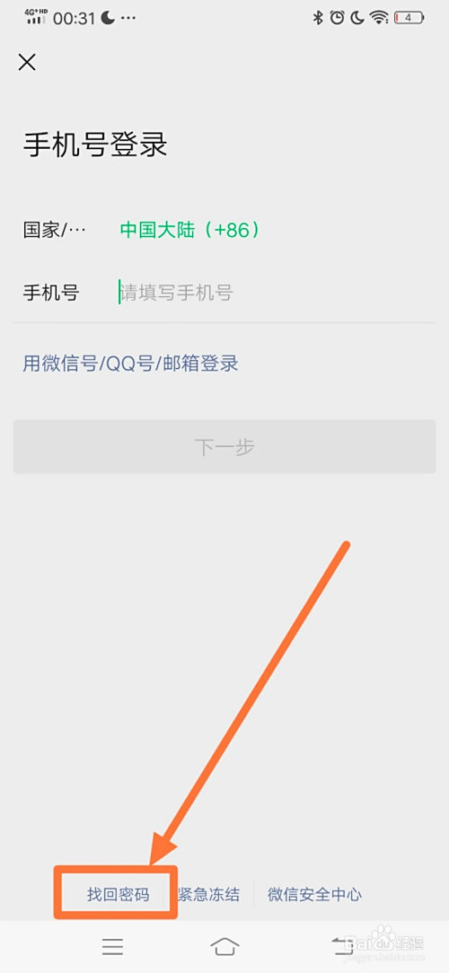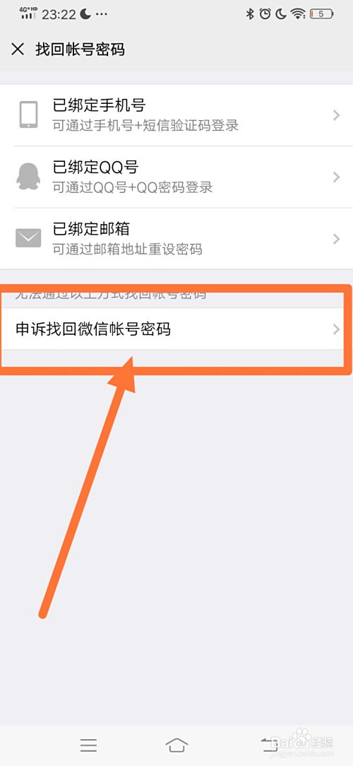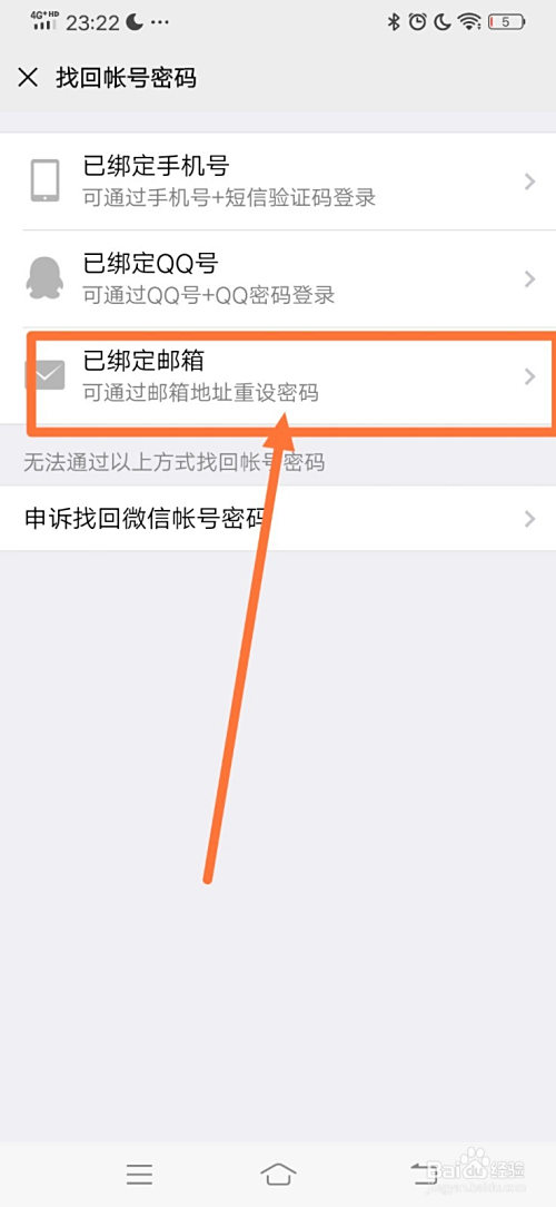 第三种方式,是在微旌旗灯号绑定了邮箱的前提下才能进行的,即点击“找回暗码”,进入到“找回帐号暗码”界面;