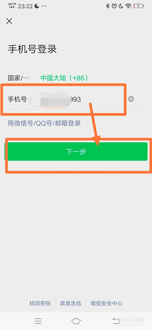 起首,第一种方式,可以在登录页面中,输入响应的手机号码,点击“下一步”,如下图所示;