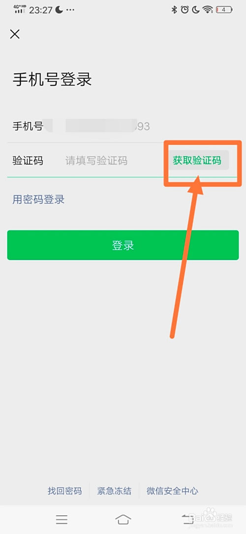 在弹出的新页面中,点击“获取验证码”,期待手机号码收到验证码后,填入准确的验证码,点击“登录”即可进入微信本家儿页;