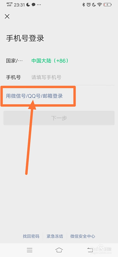 第二种方式,是确保微旌旗灯号绑定QQ号的前提下才能操作,即点击“用微旌旗灯号/QQ/邮箱登录”进入登录页面;