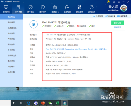 进入硬件参数界面后,即可看到电脑内存和设置装备摆设信息了。