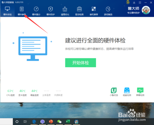 运行鲁巨匠客户端后,点击“硬件参数”。