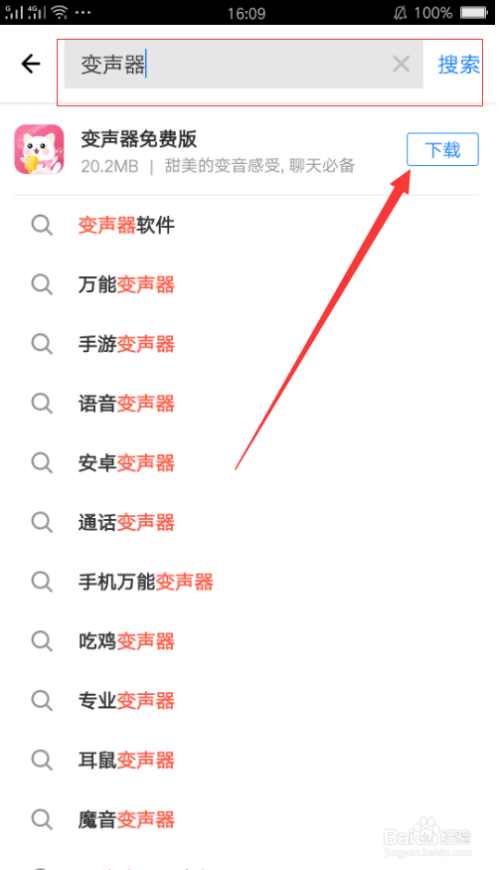 在搜刮框搜刮变声器并点击“下载”。