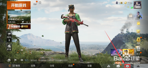 第一步:进入到和平精英本家儿界面,点击【设置⚙】