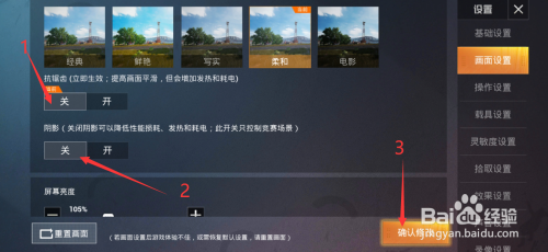 第四步:设置好之后下滑,找到【抗锯齿】【暗影】