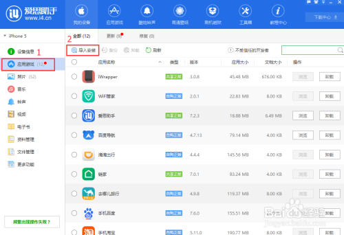 4.点击“应用游戏-导入安装”,打开已下载的安装包;
