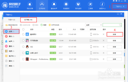 3.打开“下载中间-已下载”,点击“安装”选项;