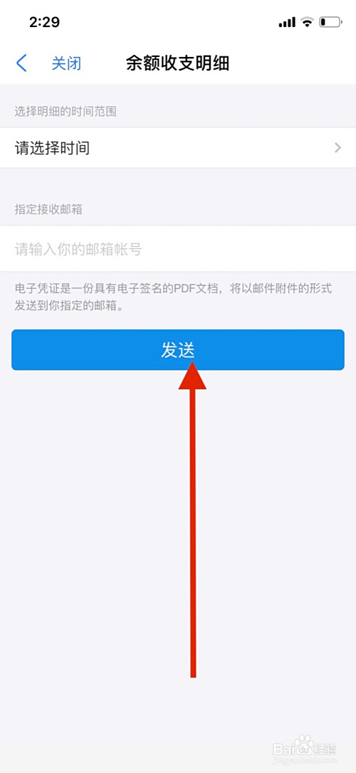 选择需要开具明细时候和输入领受邮箱点击发送,后续经由过程各类验证是否本人。