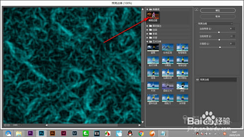 4.然后打开滤镜库,找到气概画中的照亮边缘。
