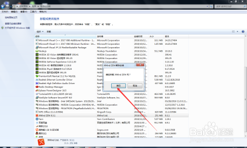 然后会弹出一个小窗口,就是问您是否确定卸载此软件。点击确定即可卸载。我这里就演示到这里了,就不卸载了哈。后面的大师按照提醒操作即可。