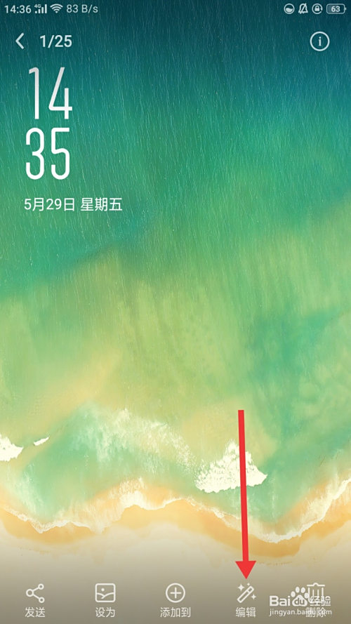 打开手机,然后找到并打开需要p字的图片,再点击编纂。