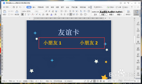 4、接着写下两个小伴侣的姓名,中心可以添加一些可爱的装饰品。