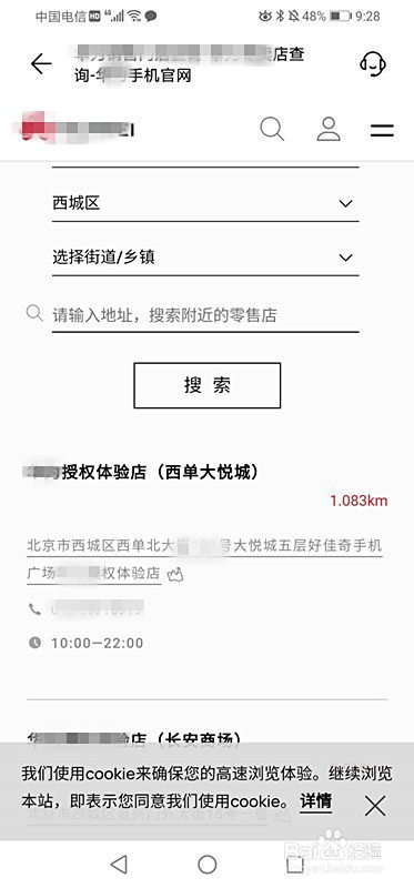 可以点选“查看华为发卖门店”或“查看荣耀发卖门店”,我点选“查看华为发卖门店”。