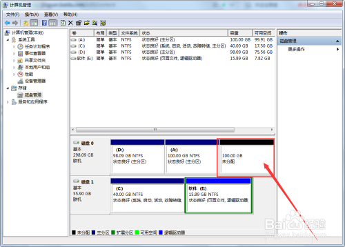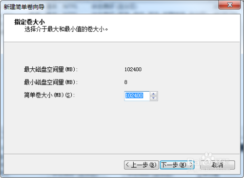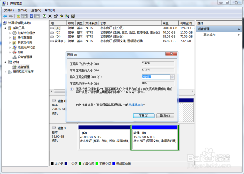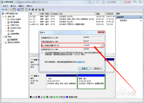 然后再输入压缩空间量里面输入您需要压缩的空间巨细,(1G=1024M)如:我这里要增添一个100G的盘,在压缩这一步输入102400即可。然后点击压缩。就会鄙人面呈现。如图。