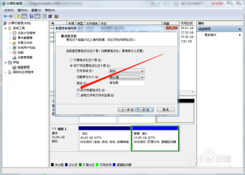 然后点击下一步格局化分区,必需要格局化的。然后点击下一步,点击完当作,期待格局化完当作之后即可利用了。