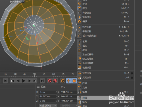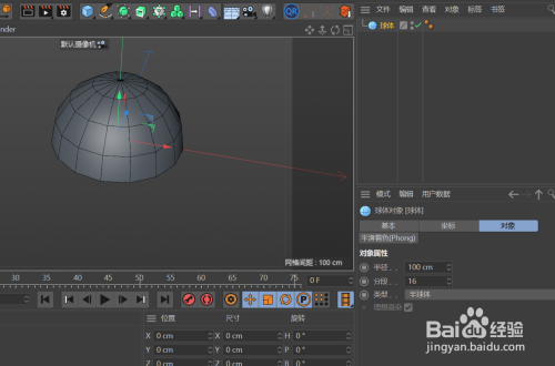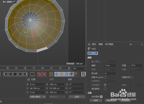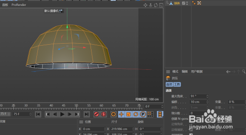 将半球体转为可编纂对象;选中所有面,标的目的外挤压,值为10CM;如图所示。