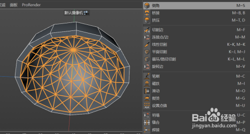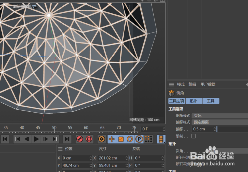 选中半圆球内部所有边进行实体倒角,距离为0.5;如图所示。