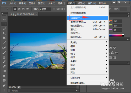 点击滤镜菜单,在打开的下拉菜单中选择滤镜库;