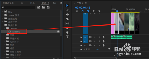 选择需要恍惚的视频片段,将“快速恍惚”拖动到该片段。