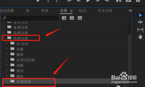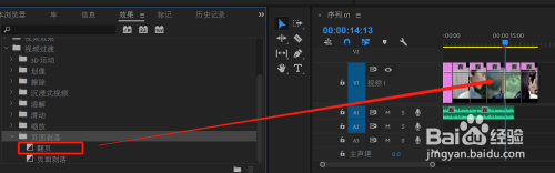 找到“翻页”,用鼠标拖动“翻页”到视频轨道所选的时候点上。
