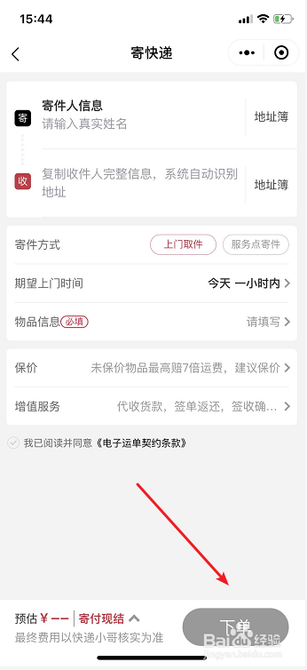 输入寄件的相关信息后,点击【下单】