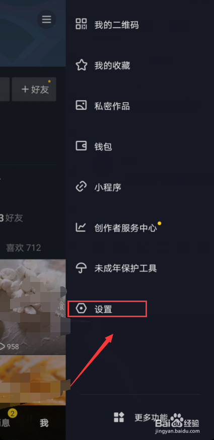 第三步,进入后,会发现您的手机页面右边切换了,点击最下面的【设置】。