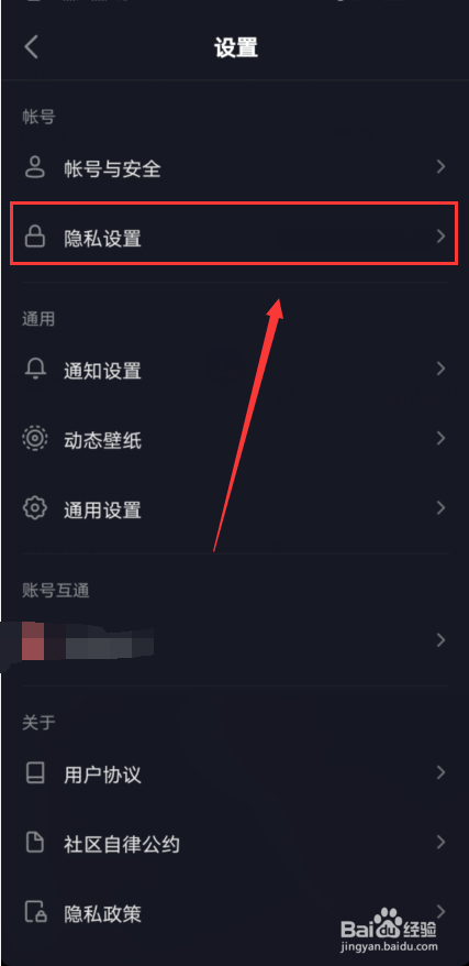 第四步,在设置里面后,您会看到有良多关于设置的操作选项,选择【隐私设置】。