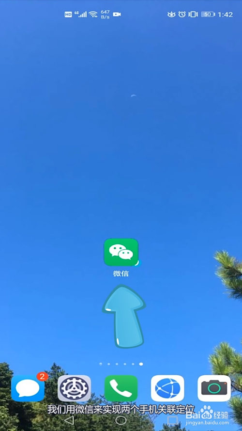 1、我们用微信来实现两个手机联系关系定位,我们起首打开微信。