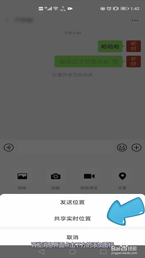 4、接着再里面选择并点击位置,选择共享及时位置。