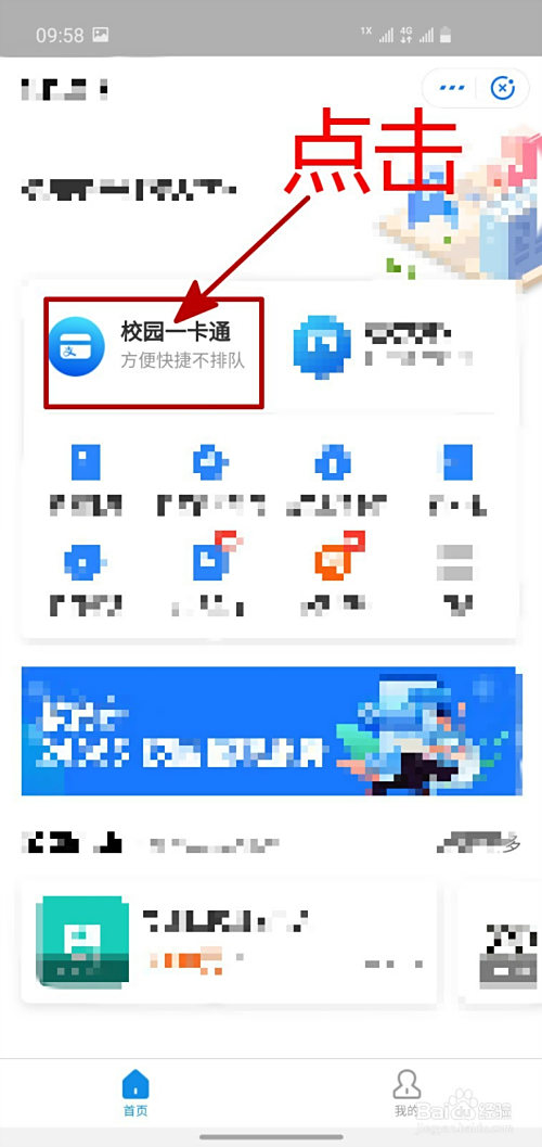 进入到校园糊口的界面后,我们很轻易就能看到“校园一卡通”,直接点击即可。