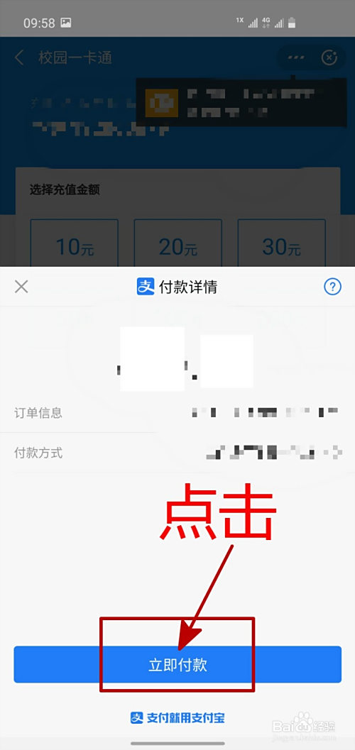 选择好我们要充值的金额之后,点击“当即付条目”。