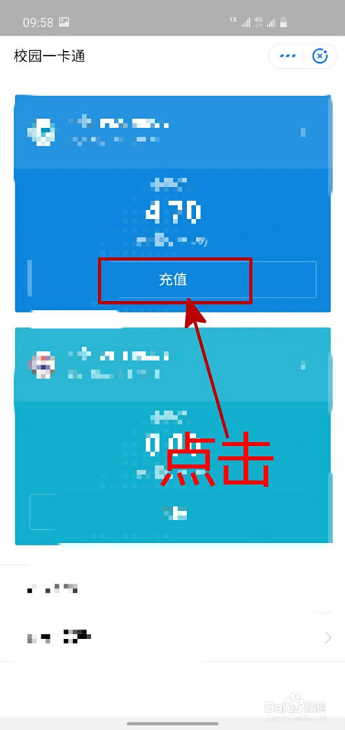 进入到校园一卡通界面之后,我们点击“充值”。