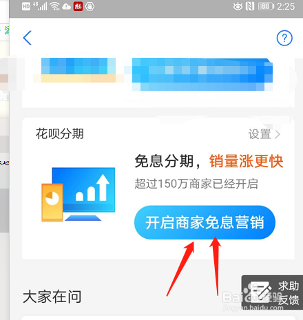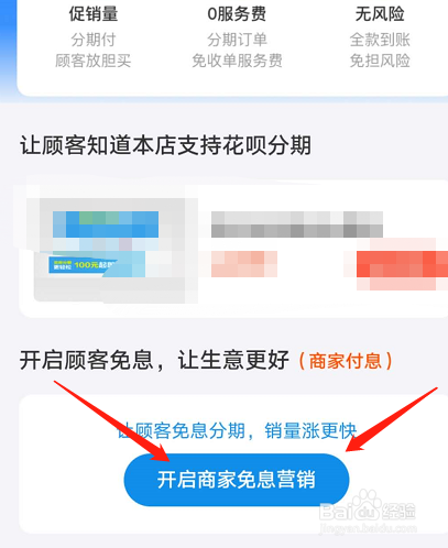 然后我们选择“开启商家免息营销”。