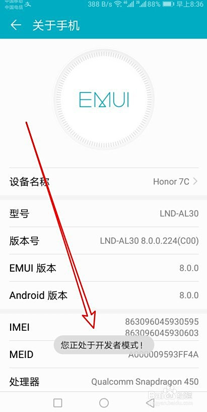 接着再打开的关于手机页面持续点击版本号的快捷链接。