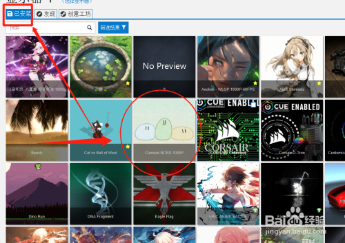 第二步,在【创意工坊】中,找到【已安装】,选择需要快进的壁纸。