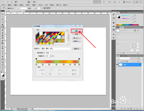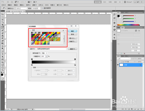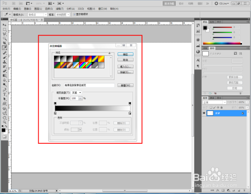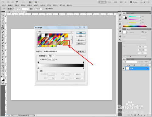 点击【渐变东西】-【径标的目的渐变】,点按【可编纂渐变条】,弹出渐变编纂器;