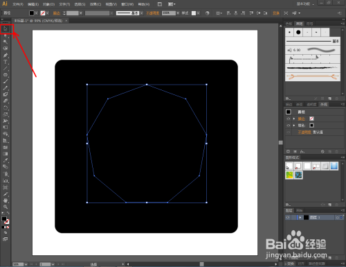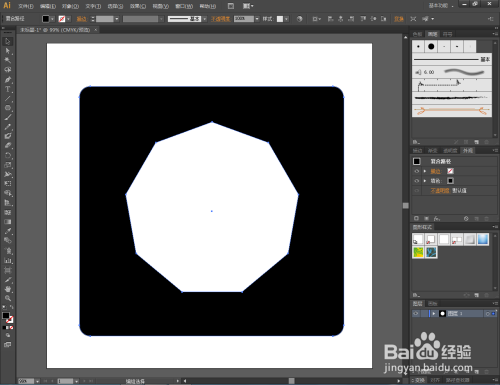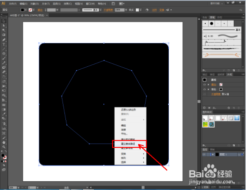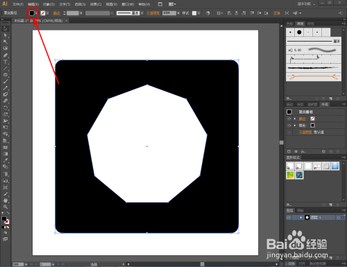 点击【选择东西】,同时选中圆角矩形图案和九边形图案。点击鼠标右键-【成立复合路径】,将两图案路径进行连系;