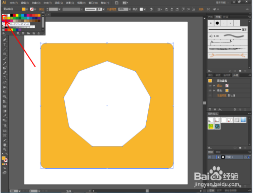 最后,点击【色板】,将图案设置为想要的颜色即可。这样我们的镂空九边形圆角矩形图案就建造完当作了。