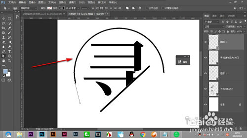 1.起首我们要在文字中绘制一个润色的半圆弧。