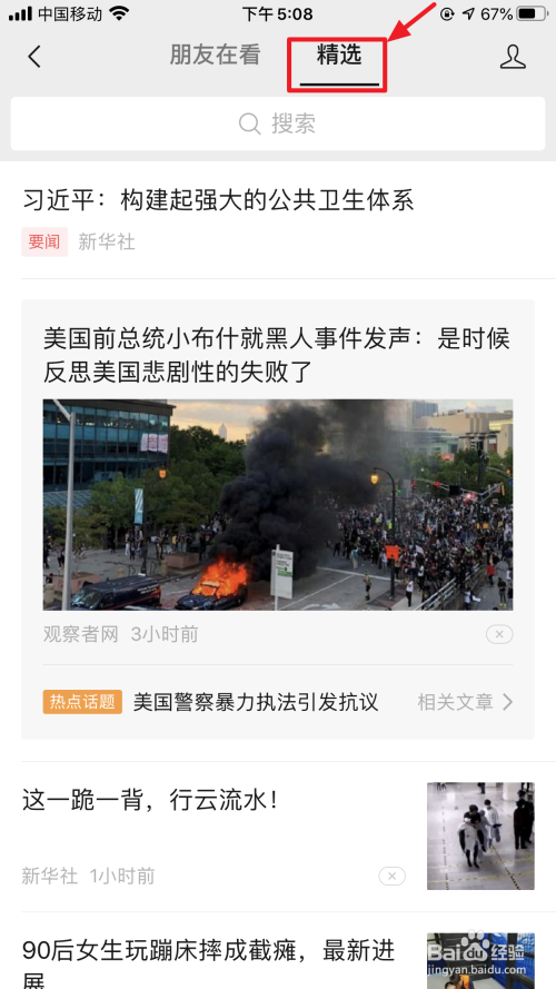 滑动到“精选”,可以看到微信保举的一些优质文章,如下。
