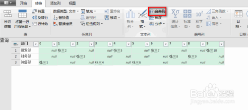 起首,选中已经初步排列的数据,并在“转换”选项卡下点击“归并列”,具体如图所示: