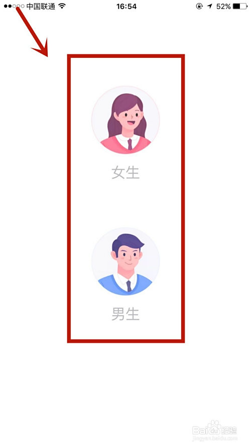 在页面,选择上本身性别。