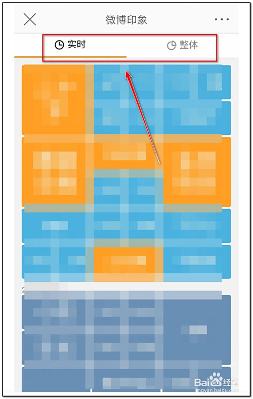 5.在此界面可以看到输入词语的微博印象,可以查看及时和整体印象词