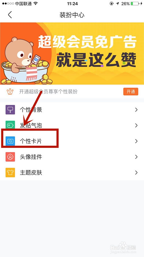 紧接着点击进入个性卡片选项。