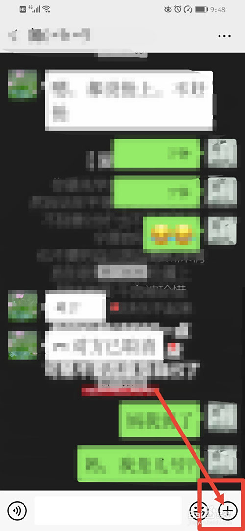 然后,我们在聊天界面中找到右下角的“+”按钮,点击按钮弹出选项菜单。